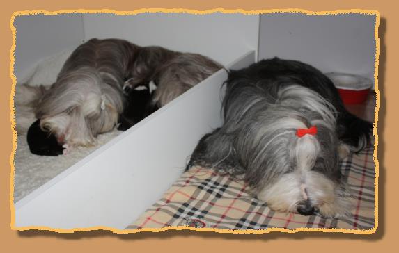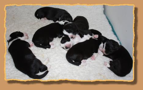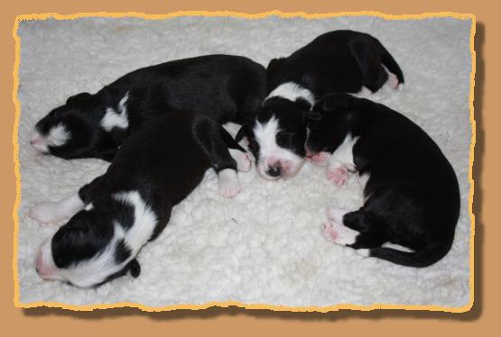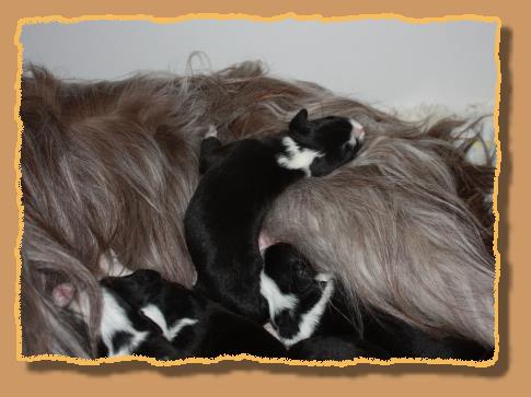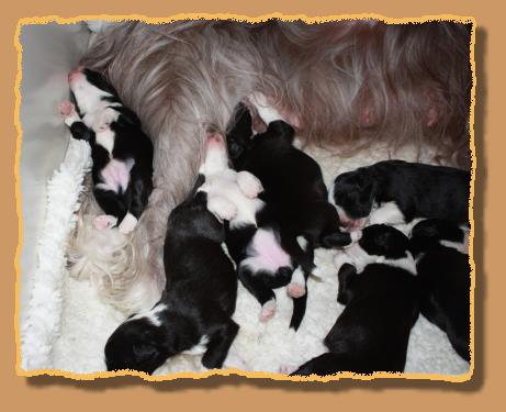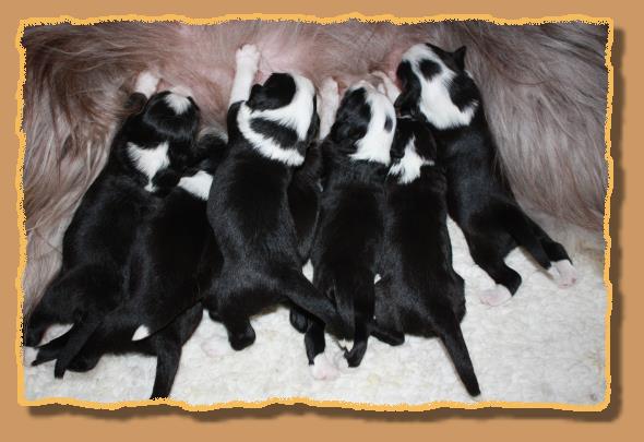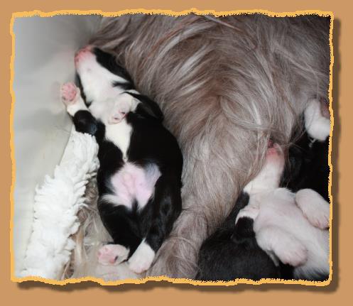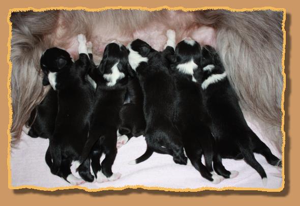 Heute sind die Welpen schon 1 Woche alt. Sie haben ihr Gewicht fast verdoppelt und sind rundum gesund. Queeny ist auch diesesmal eine vorbildliche und liebevolle Mutter. Oma Nancy würde am liebsten mit Queeny tauschen und sich selbst zu den Welpen legen.