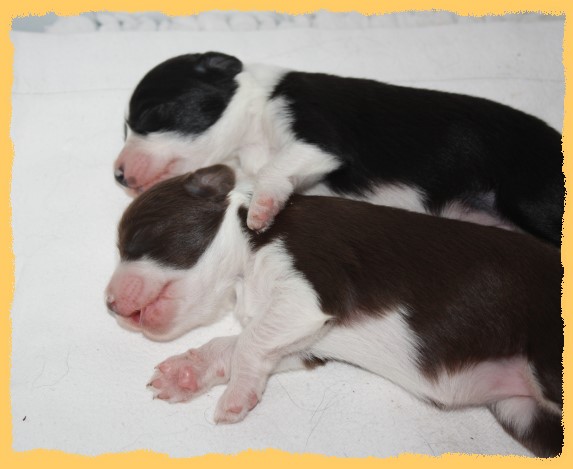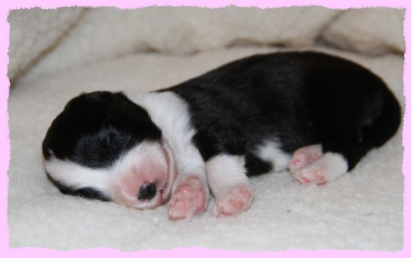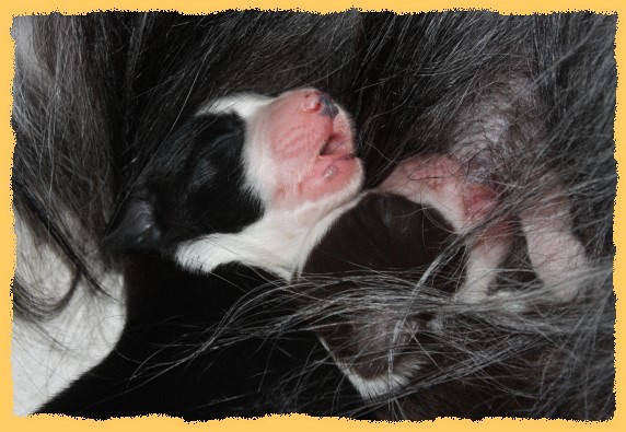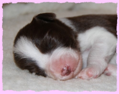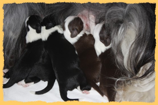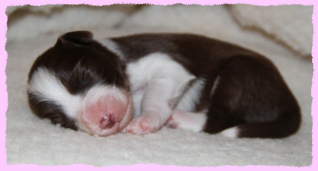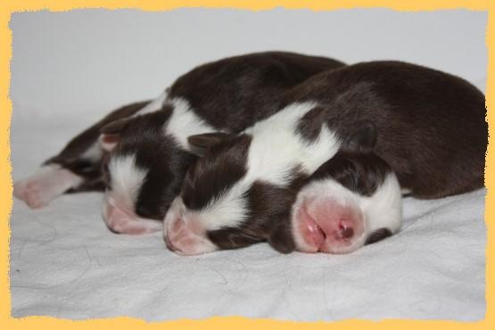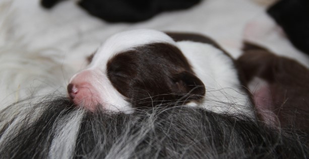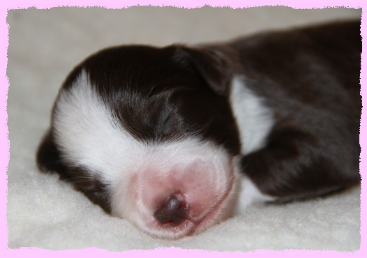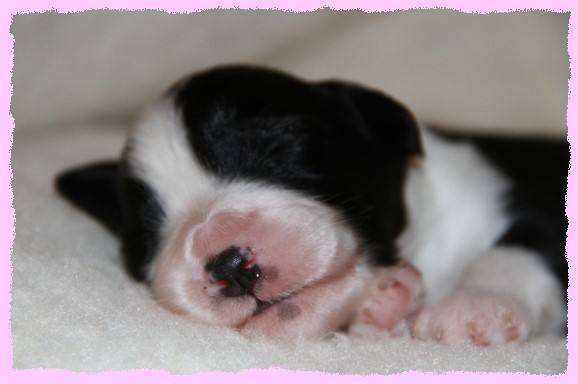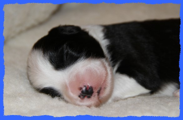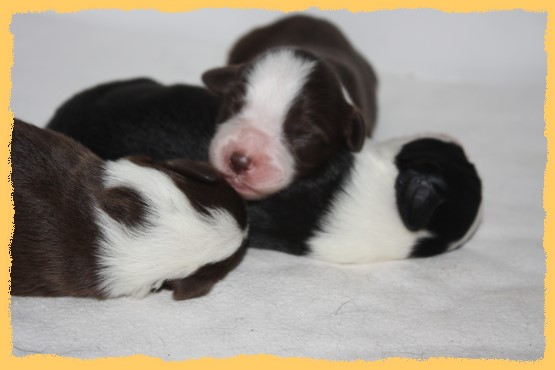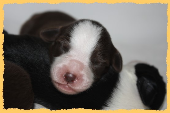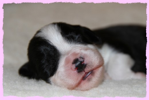 Heute sind die Welpen schon 1 Woche alt. Sie haben ihr Gewicht mehr als verdoppelt und üben sich wie alle Welpen in dem Alter mit Trinken und schlafen. Whisky ist eine vorbildliche und fürsorgliche Mama wie ich es von meinen Mädels bisher noch nie anders erlebt habe.