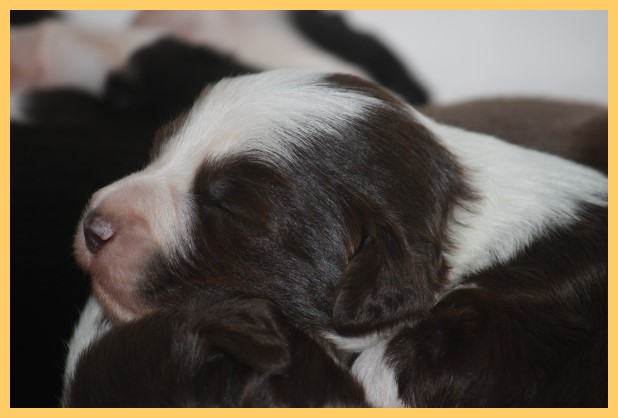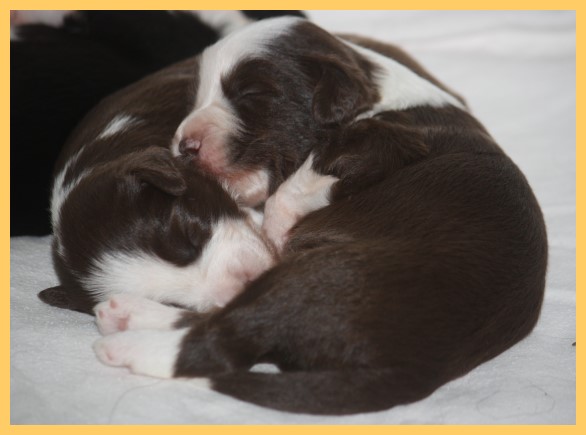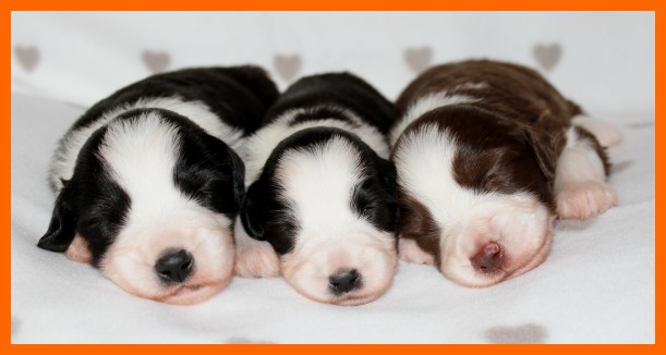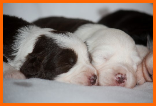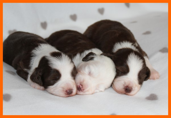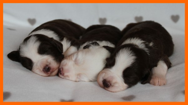 Die Welpen sind heute 2 Wochen. Die Augen sind fast alle auf und die ersten Laufversuche sind gestartet. Es ist einfach zu schön und ich freue mich schon auf die nächsten turbulenten Wochen mit den Kleinen.