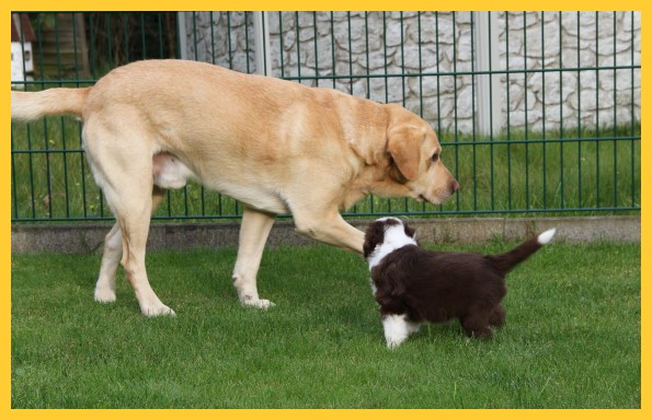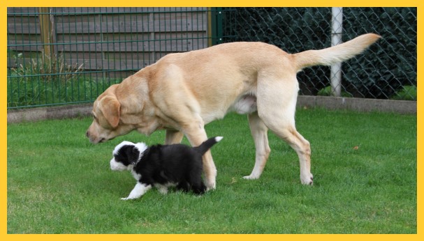 Heute sind die Welpen 5 Wochen und 3 Tage. Da das Wetter nicht so mitgespielt hat wie wir es gerne wollten hat es mit den Fotos leider nicht eher geklappt. Heute Nachmittag haben wir aber die Chance genutzt, die Welpen nach draußen gebracht und ein paar Fotos gemacht.