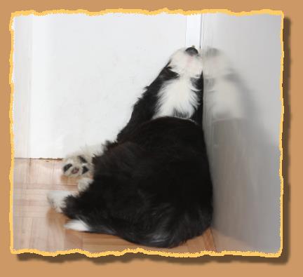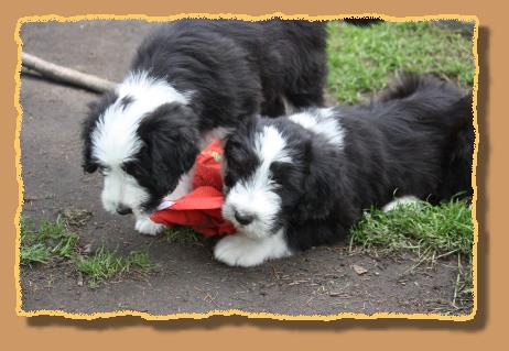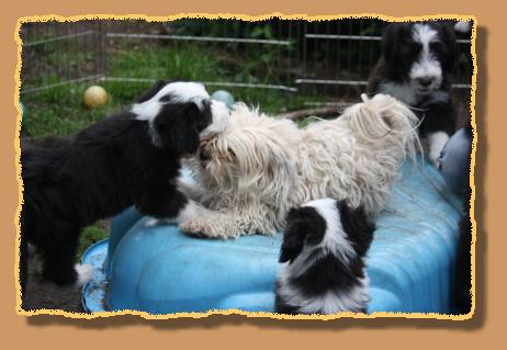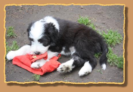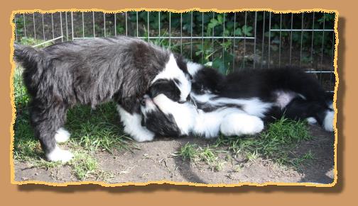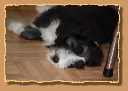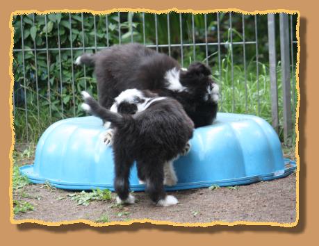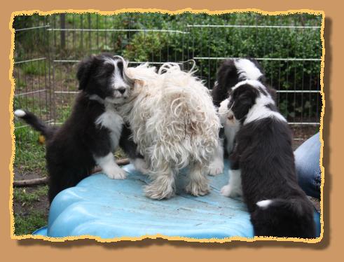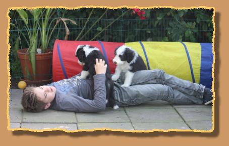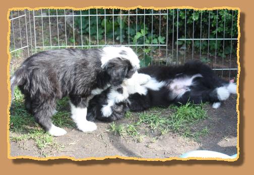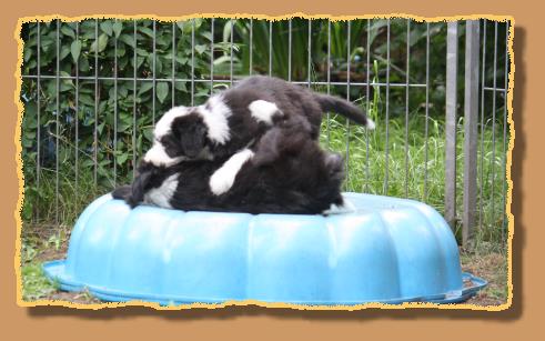 Heute sind die Welpen 9 Wochen alt und die ersten 2 sind bereits von ihren neuen Familien abgeholt worden. Die übrigen glorreichen 5 haben natürlich etwas traurig geguckt, aber wir haben uns gegenseitig mit extra Schmuseeinheiten getröstet,