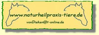 Auf der Web-Site von Tierärztin Anja von Dieken erfahren Sie viel über die Praxis und die damit verbundene Naturheilkunde. Es findet u.a. dort jedes Jahr ein TTeam-Touch Seminar mit Linda Tellington Jones statt, an dem ich mit meinem Friesen Rinus auch schon teilgenommen habe. - Sehr empfehlenswert -