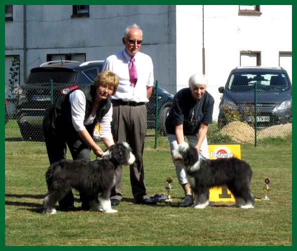 Nachdem im vorigen Jahr unser Sammy (DOWNTOWN`S Vico) bei absolutem Regenwetter in Beckum seinen bisher erfolgreichsten Ausstellungstag erlebte, haben dieses Jahr bei wundervollem Sonnenschein 3 seiner Kinder aus unserem W-Wurf ihre Ausstellungskarriere in der Welpenklasse begonnen. Außerdem waren noch sein Onkel Nando und seine Mama Nancy mit in der Veteranenklasse gemeldet. Da Nancy aber läufig war mußte sie leider zu Hause bleiben.